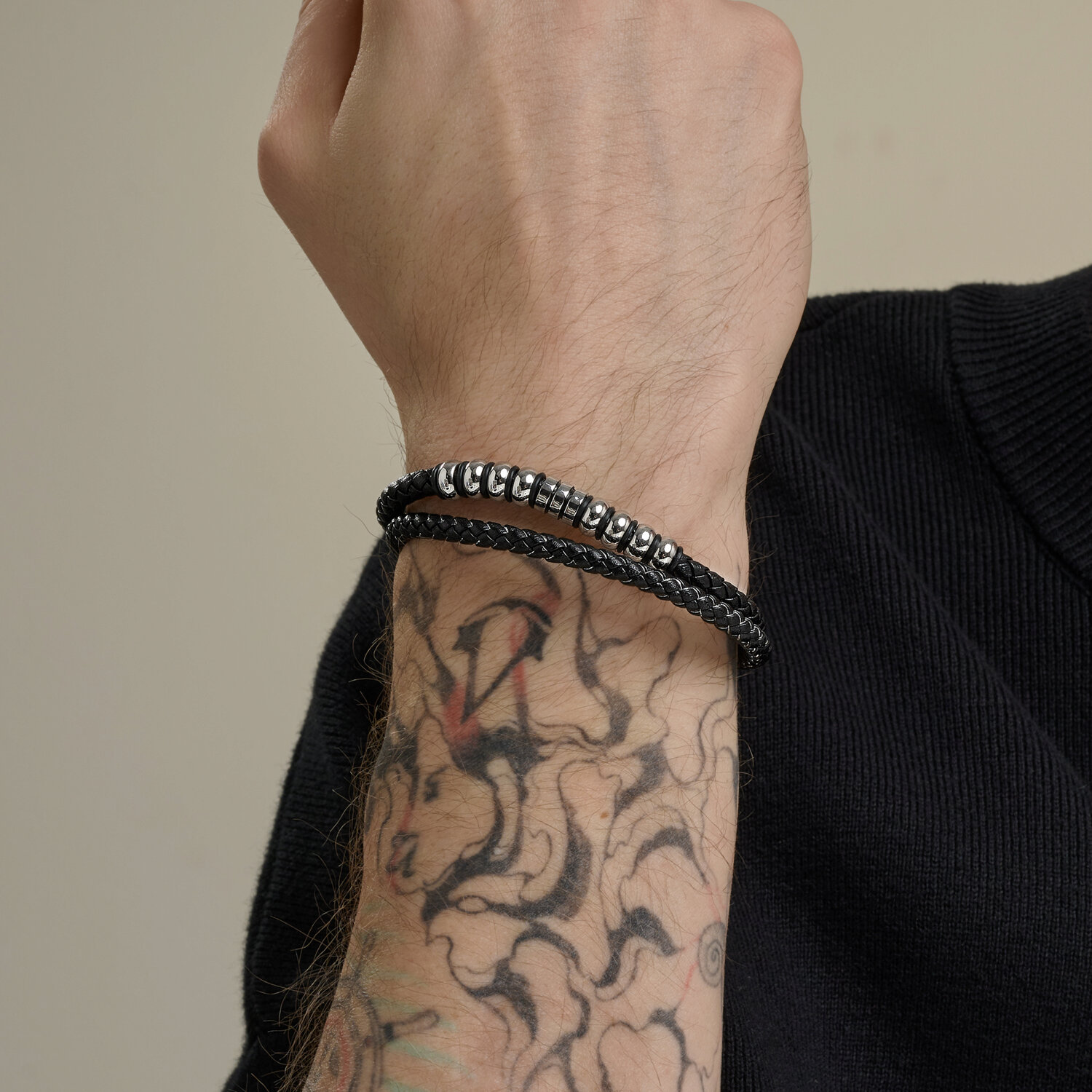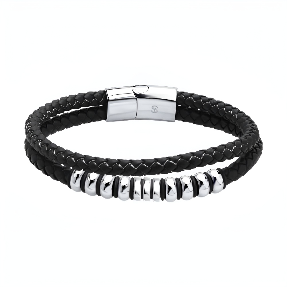 Браслет из кожи со вставками из стали