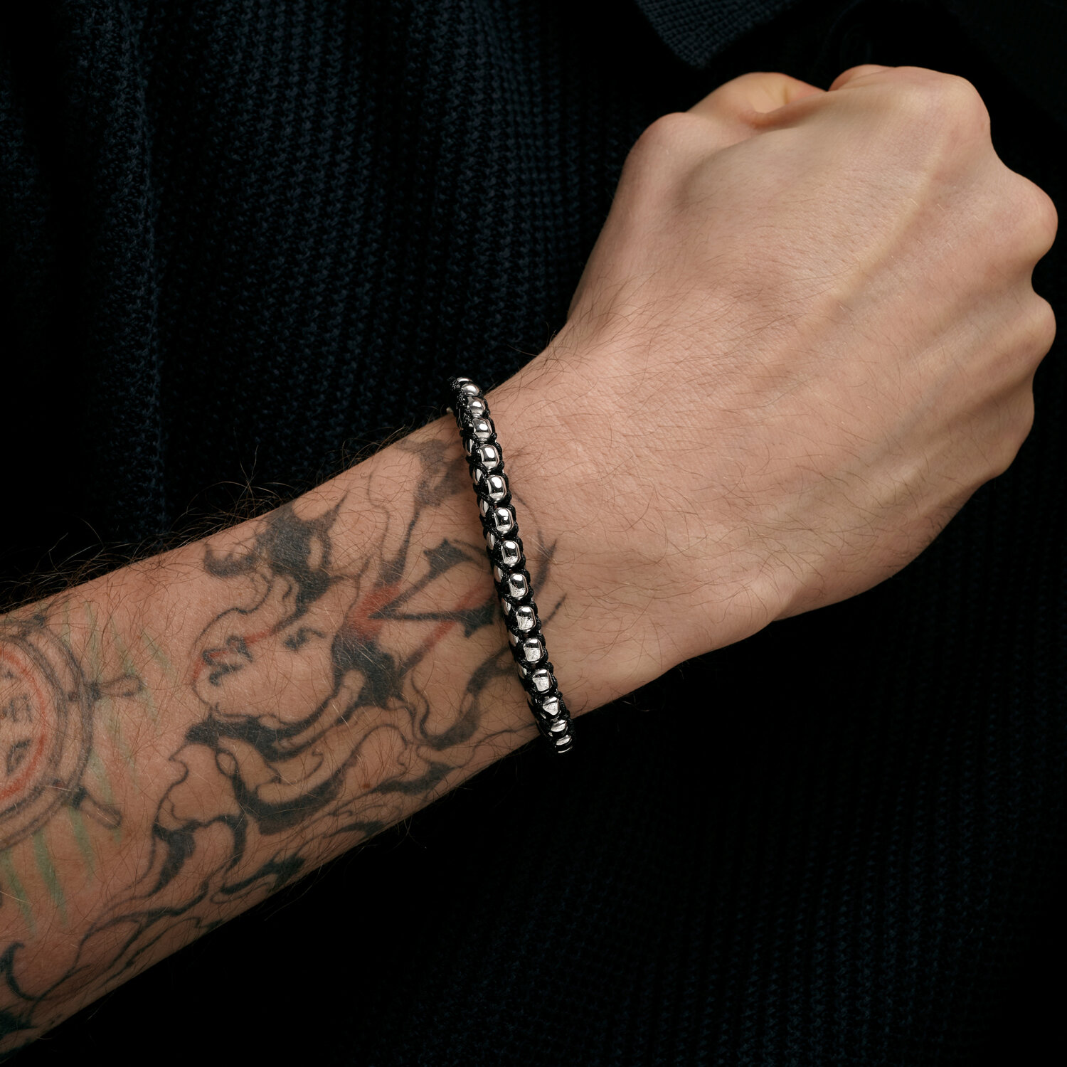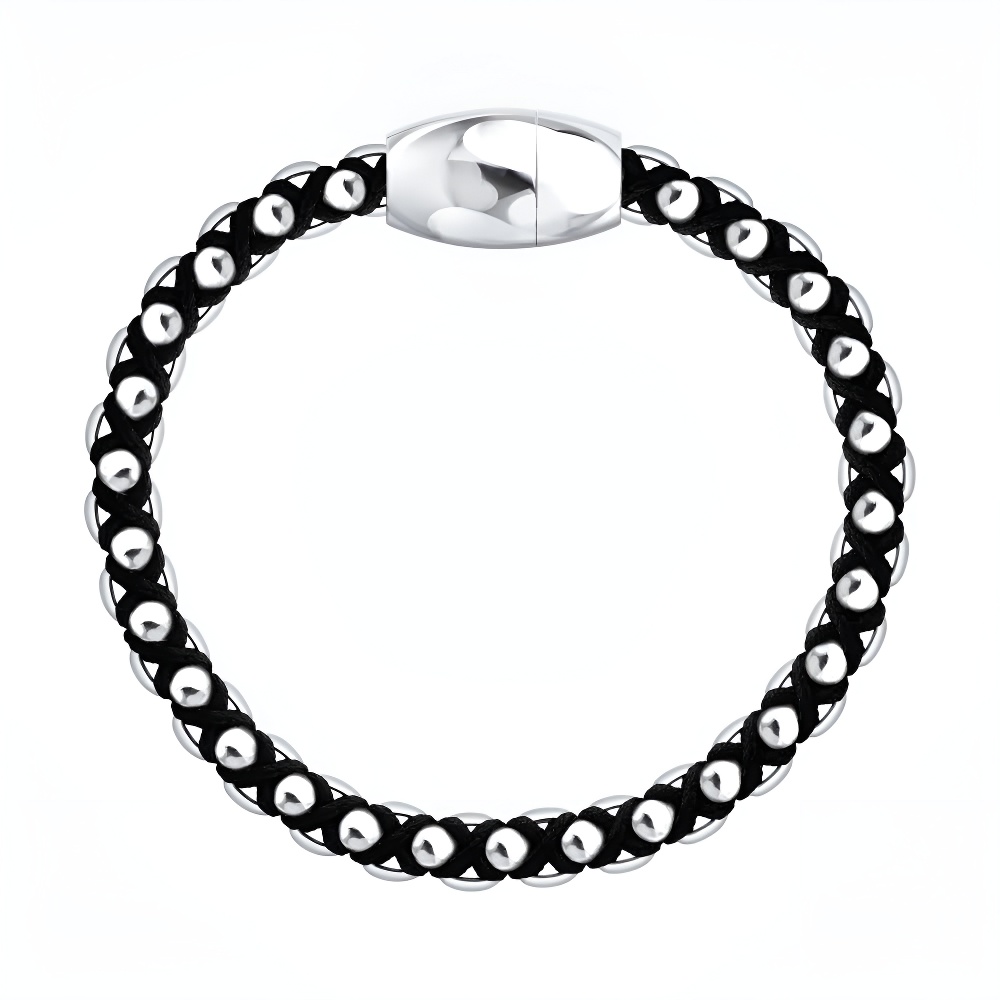 Браслет из серебра двурядный плетения "Шарик+Бочка узлом"
