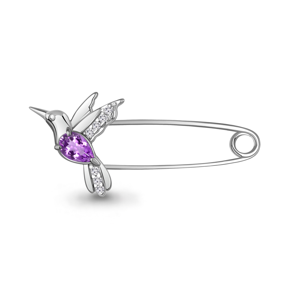 Брошь-булавка из серебра с топазом London и фианитами "Колибри"