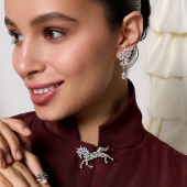 Брошь из серебра с фианитами "Лев"