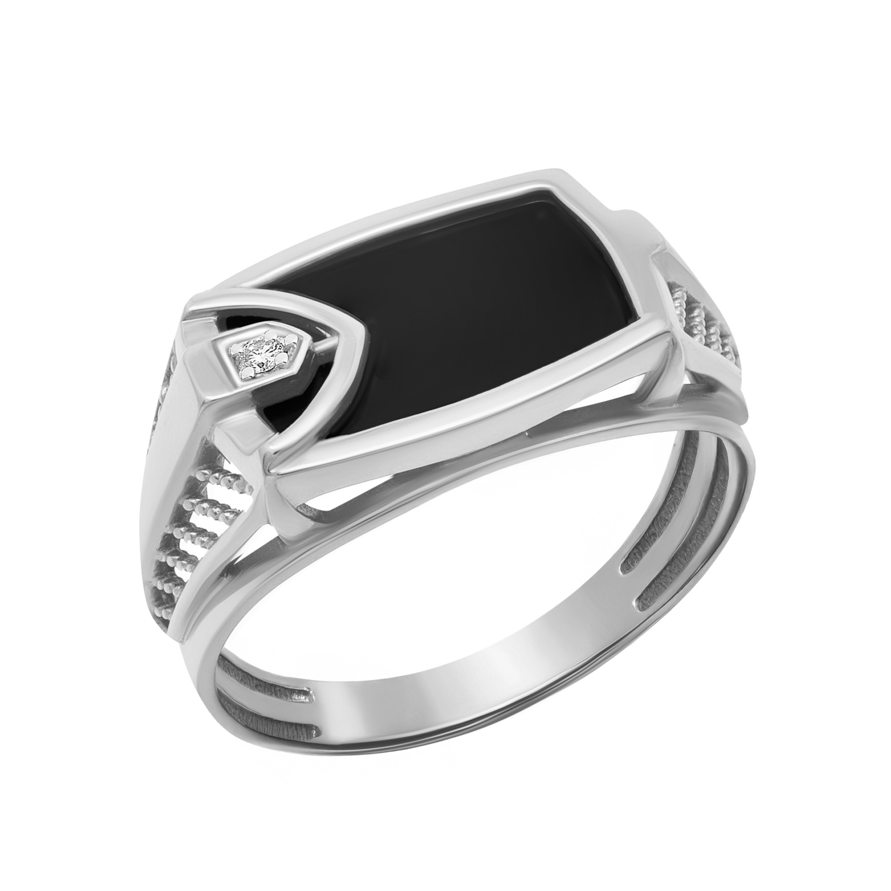 Кольцо из серебра с ювелирным кристаллом лунный оникс и фианитами