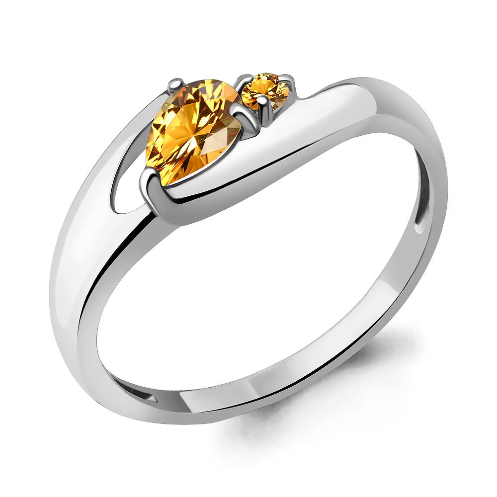 Кольцо из серебра с цитрином и фианитами