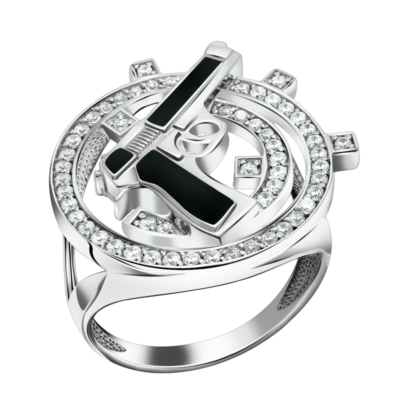 Кольцо из серебра с эмалью и фианитами