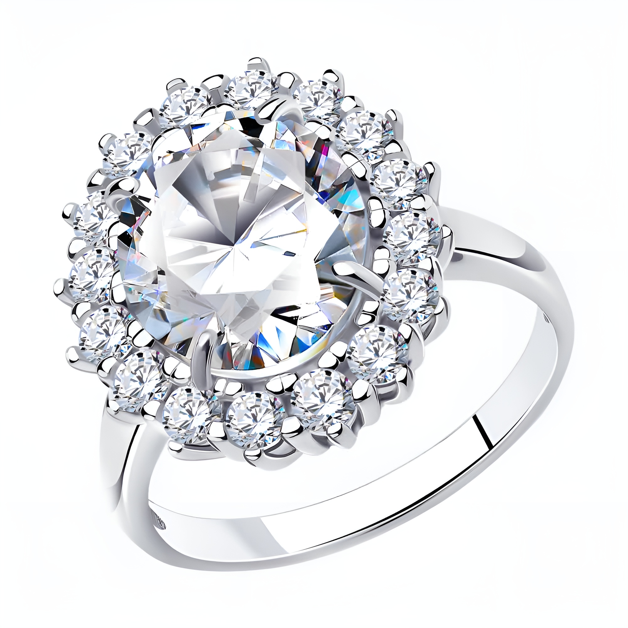 Кольцо из серебра с бриллианитом и фианитами