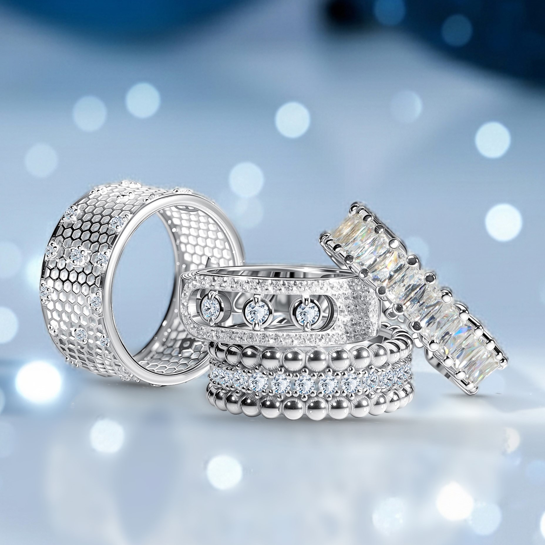 Кольцо из серебра с фианитами "Пояс Богородицы"