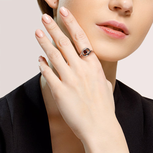 Кольцо из серебра с гранатом и фианитами