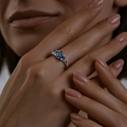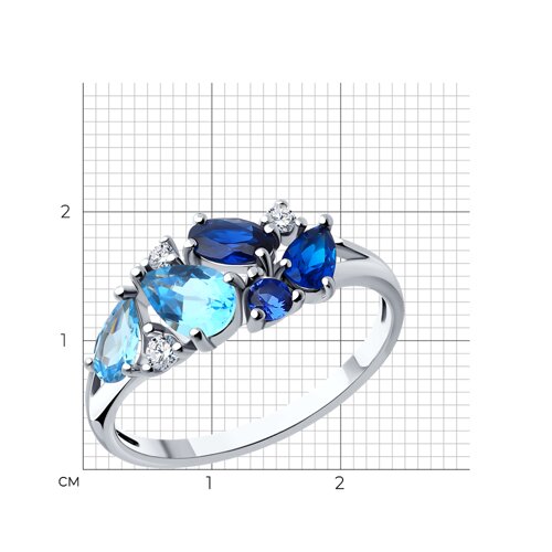 Кольцо из серебра с сапфировым корундом и фианитами