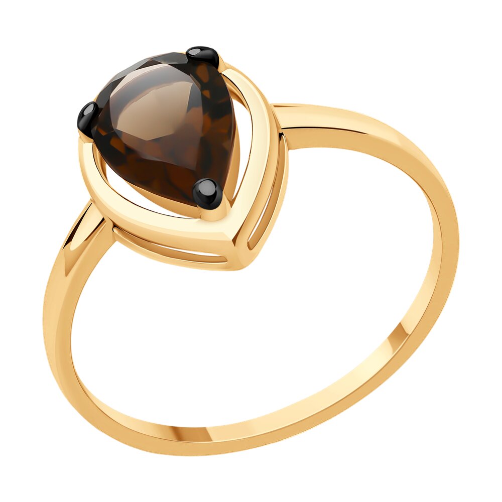 Кольцо из золота с раух-топазом и фианитами