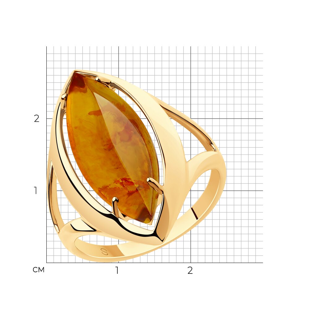 Кольцо из золота с янтарем и фианитами