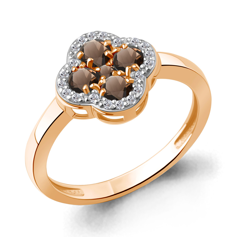 Кольцо из золота с гранатами и фианитами
