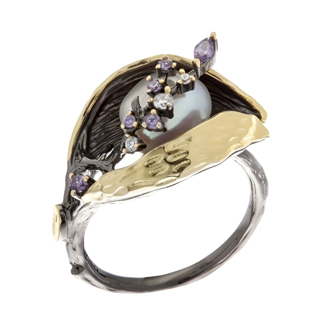 Кольцо из серебра с султанитом и фианитами