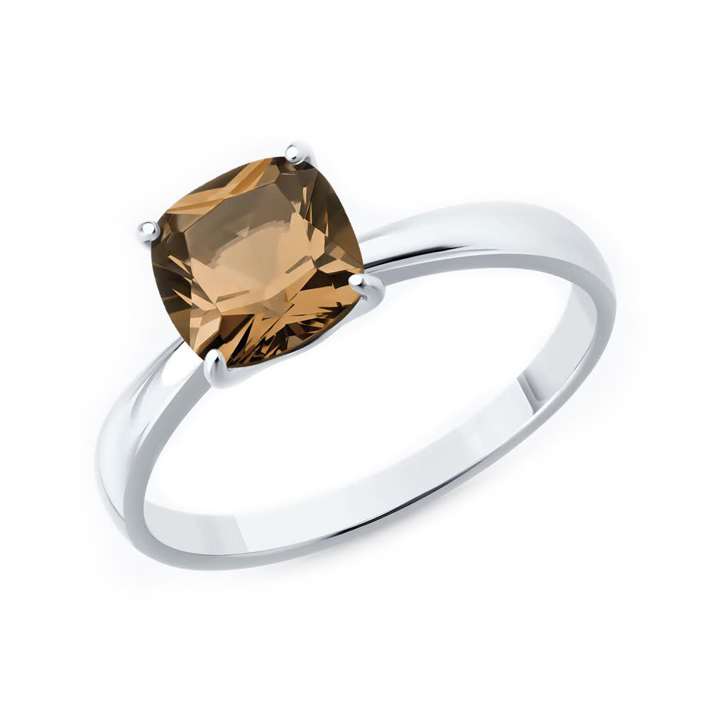Кольцо из серебра с раухтопазом и фианитами