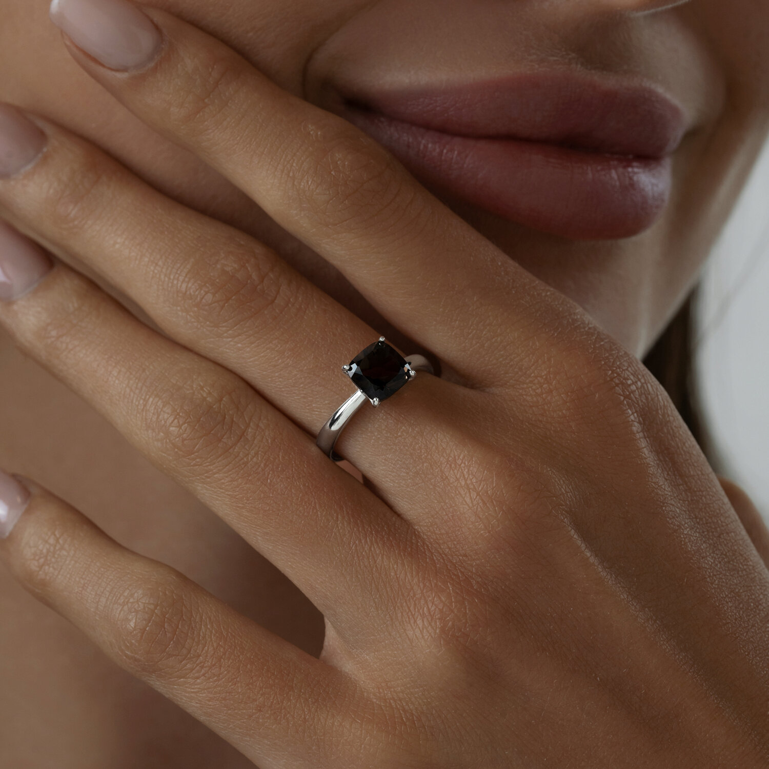 Кольцо из серебра с гранатами и раухтопазом