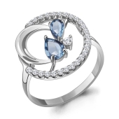 Кольцо из серебра с сапфировым корундом и фианитами