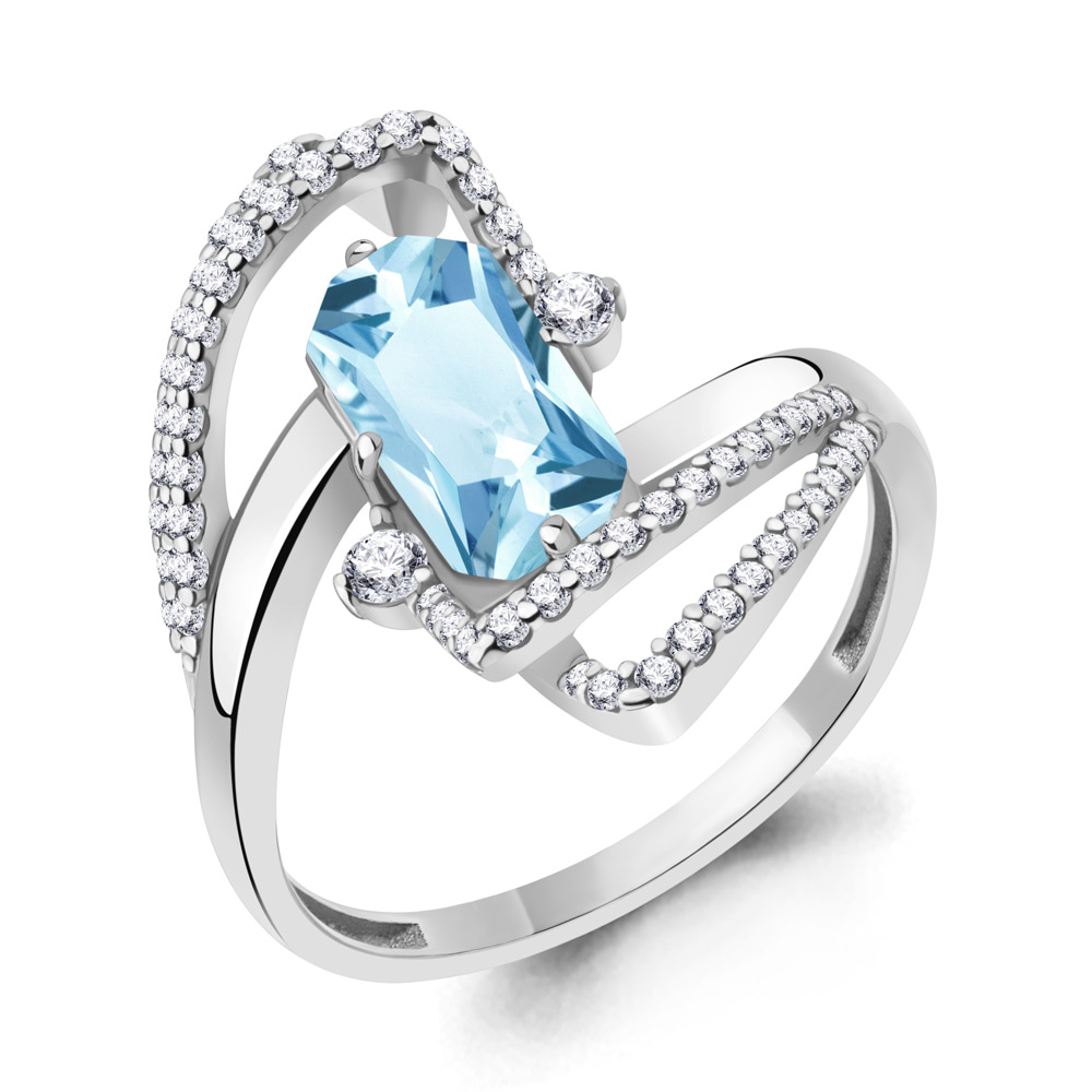 Кольцо из серебра с топазом и фианитами