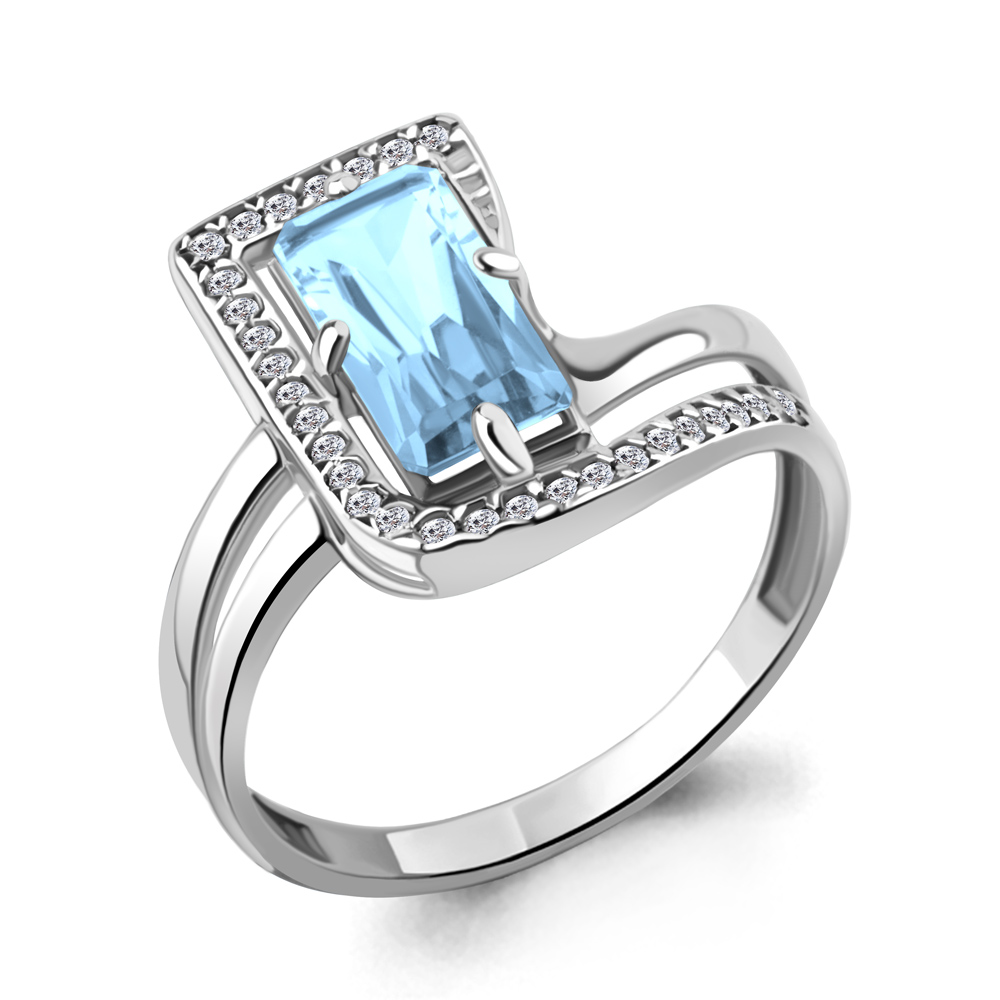 Кольцо из серебра с топазом и фианитами