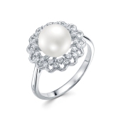 Кольцо из золота с жемчугом и фианитами