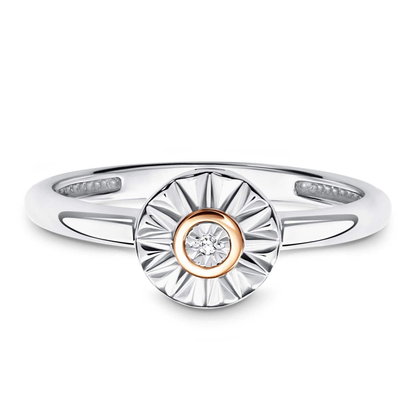 Кольцо из серебра с золотой вставкой и бриллиантом