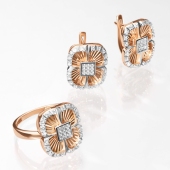 Кольцо из серебра с золотой вставкой и бриллиантом