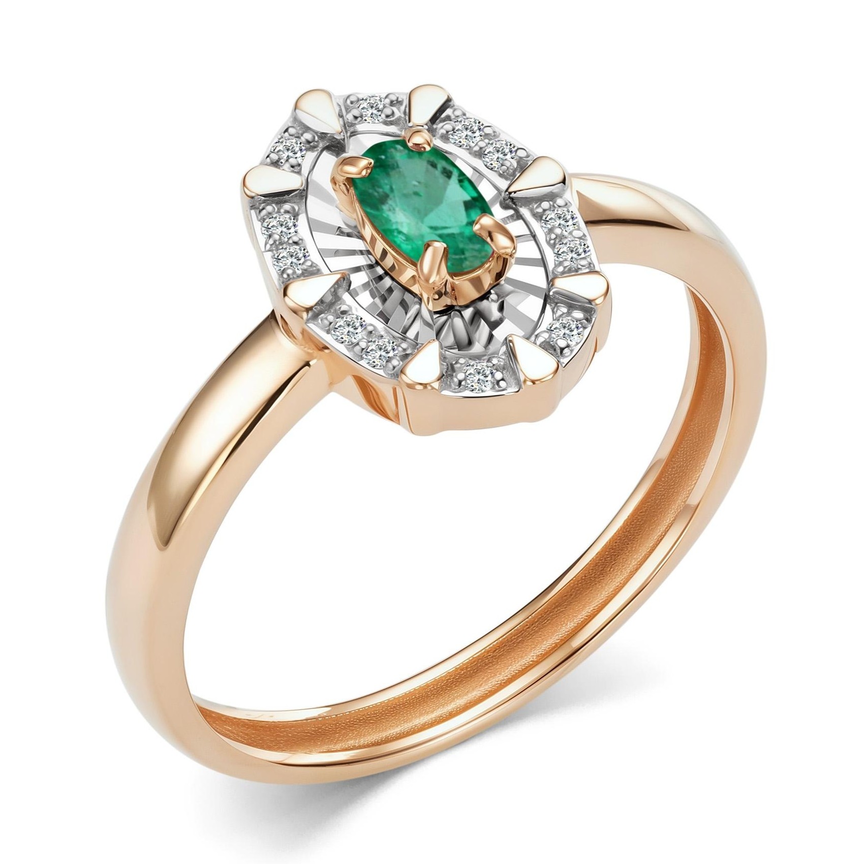 Кольцо из золота с бриллиантом и изумрудом