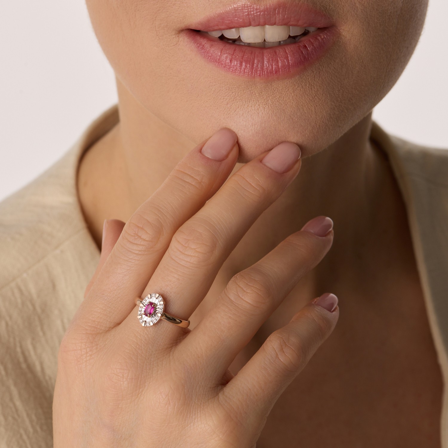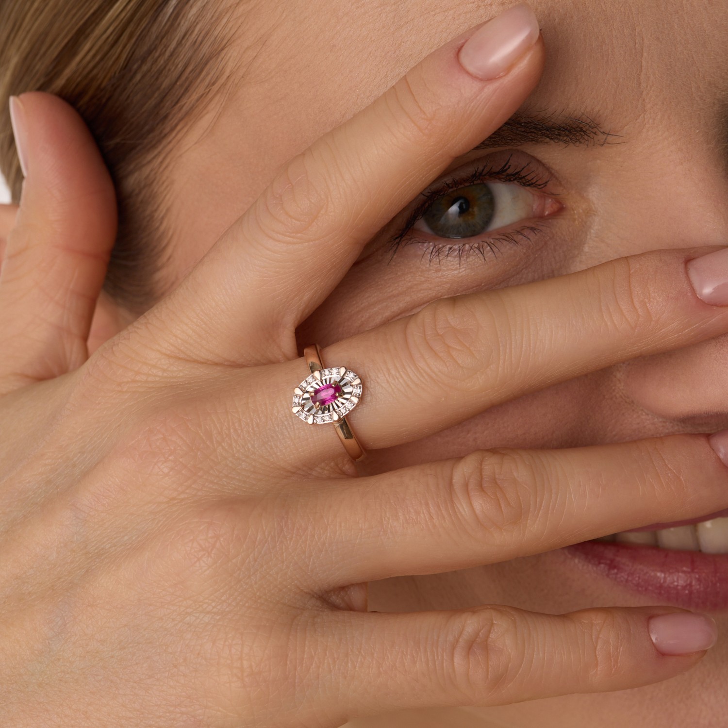 Кольцо из золота с бриллиантами и рубином