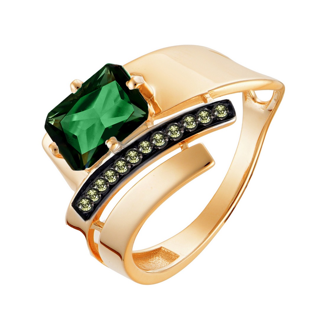 Кольцо из серебра с хризолитами и фианитами