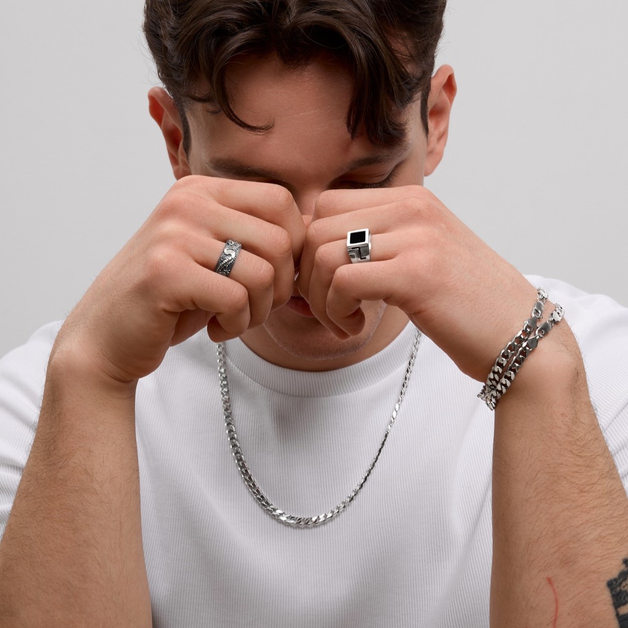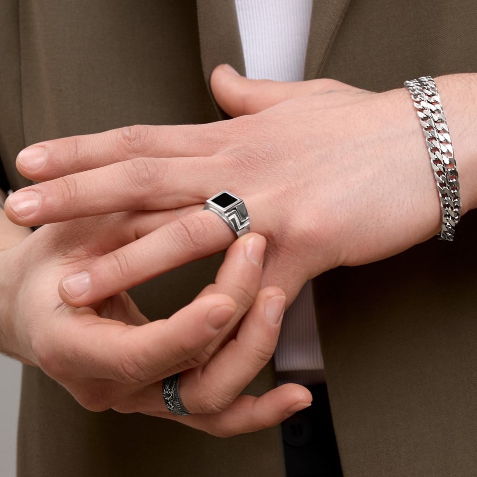 Кольцо-печатка из серебра с ониксом