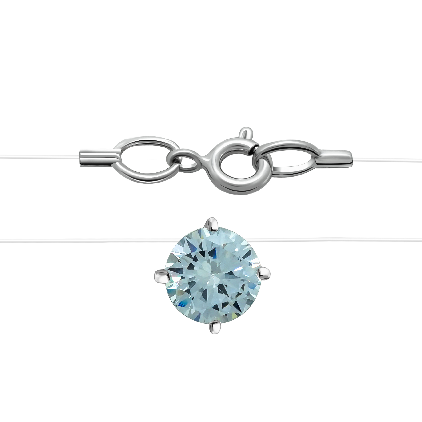 Колье на леске с серебряными вставками и фианитом