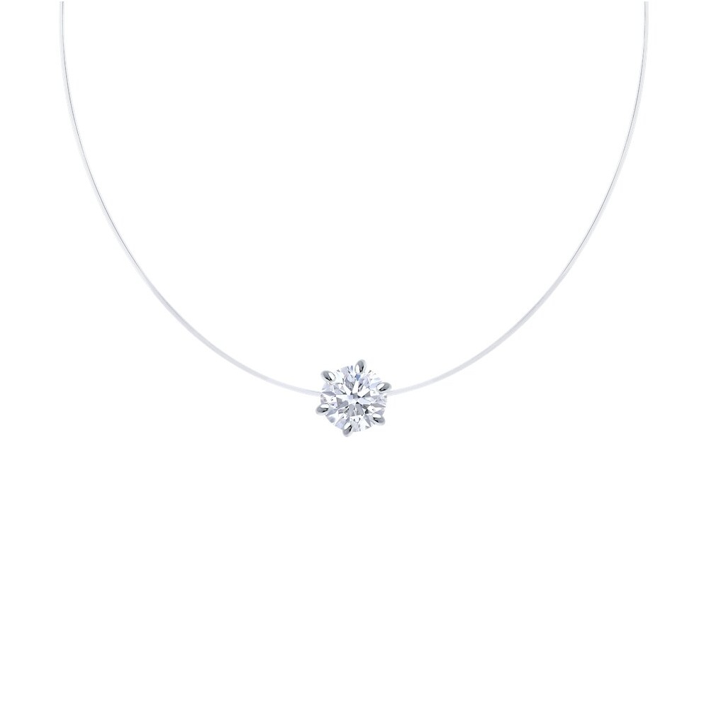 Колье на леске с серебряными вставками и фианитом