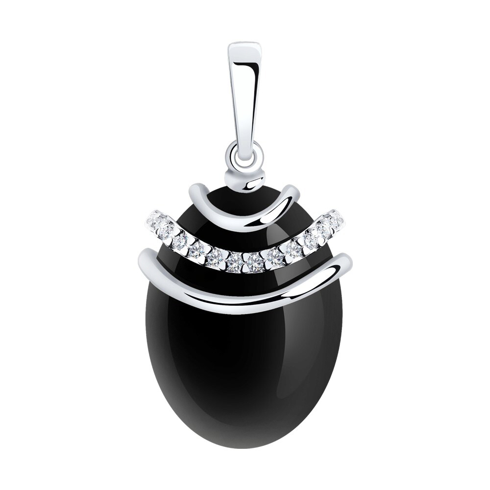 Подвеска из серебра с агатом и фианитами