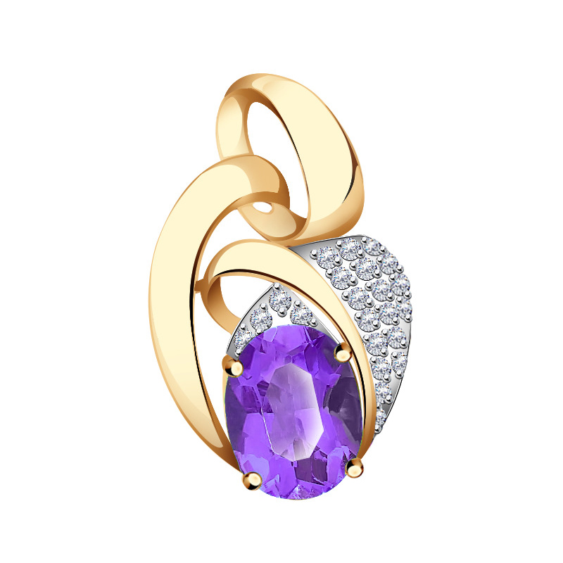 Подвеска из золота с аметистом и фианитами