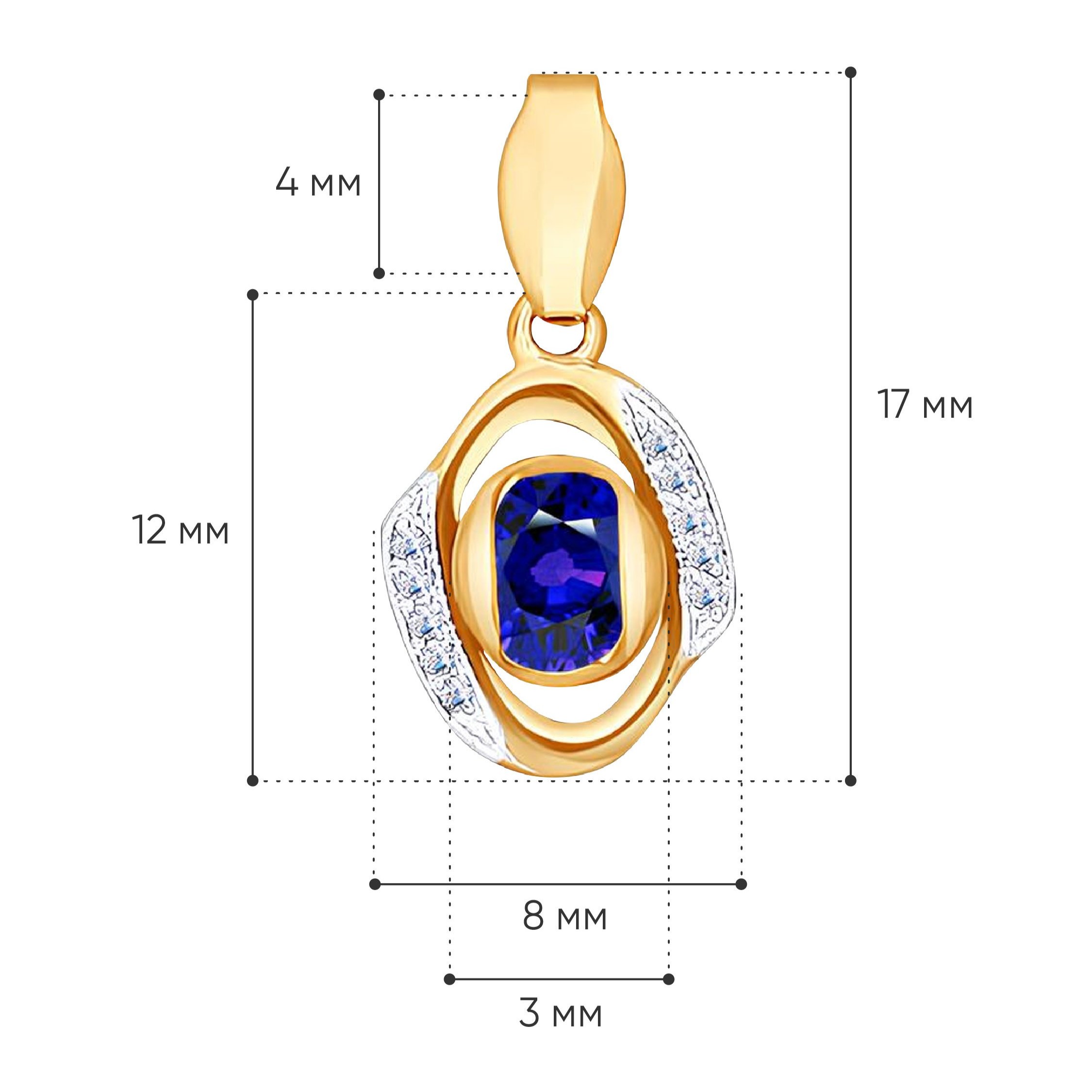Подвеска из золота с сапфиром и фианитами