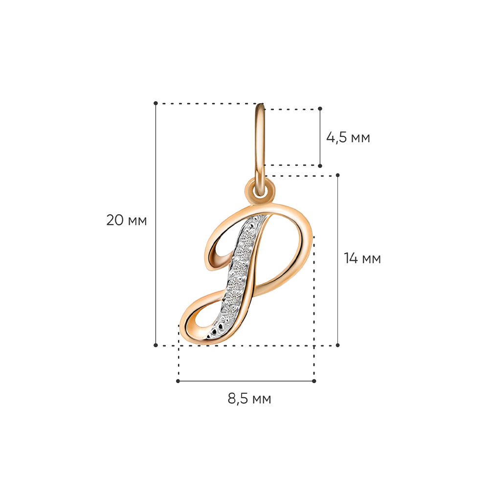 Подвеска-буква из золота с фианитами "Д"