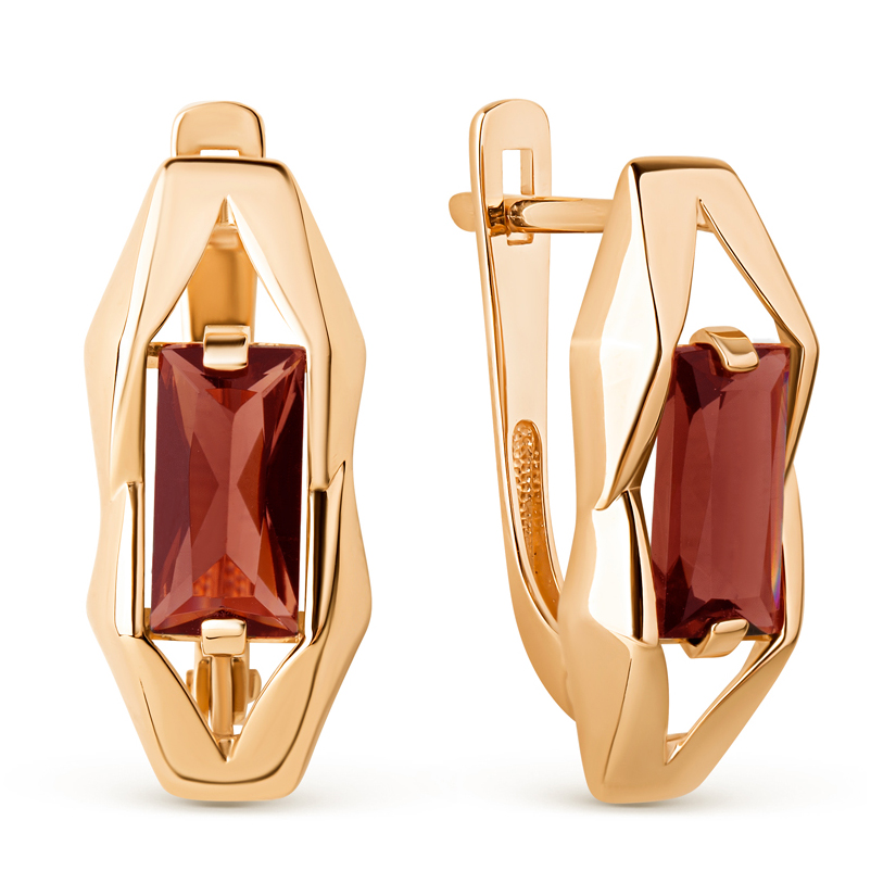 Серьги из золота с гранатами и фианитами