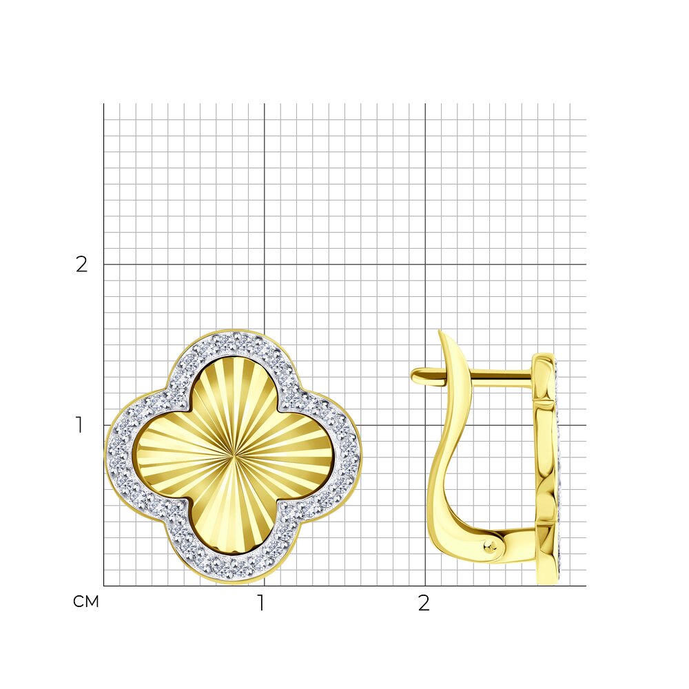 Серьги из серебра с позолотой и фианитами