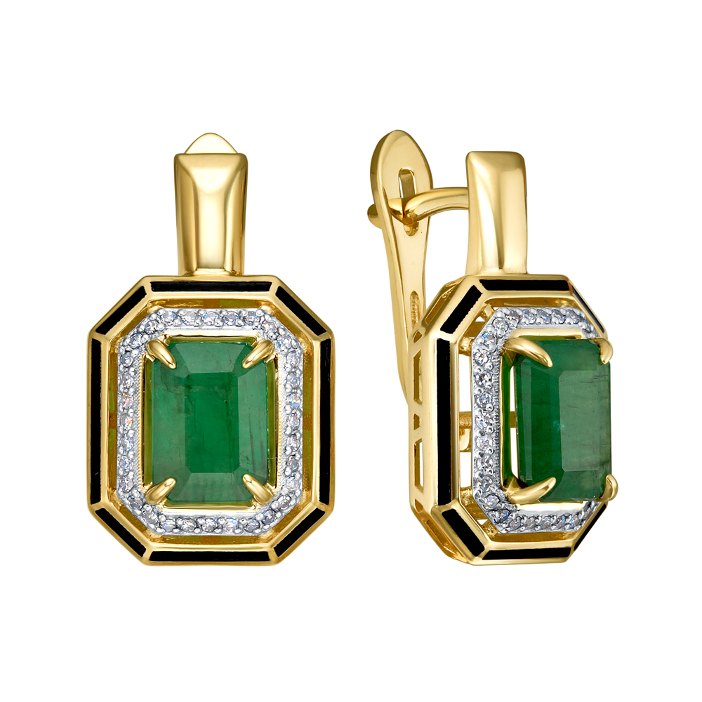 Серьги из серебра с фианитами и эмалью