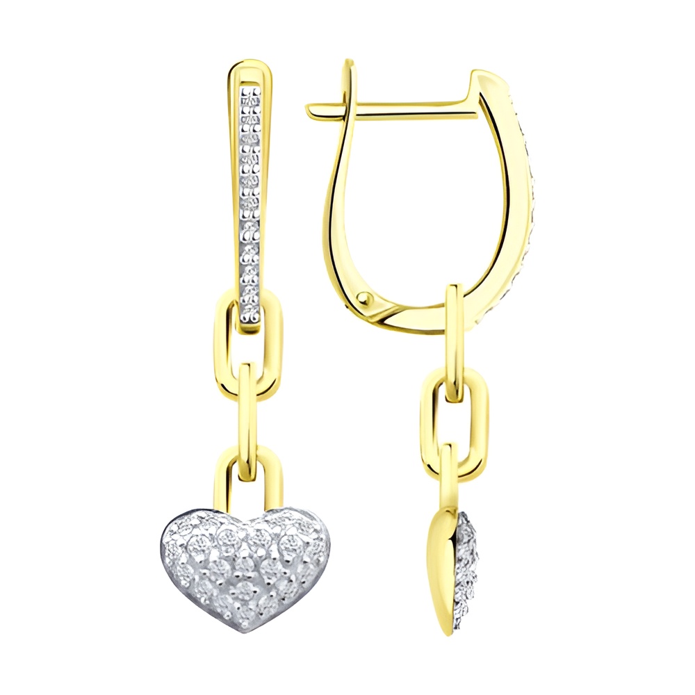 Серьги из серебра с позолотой и фианитами