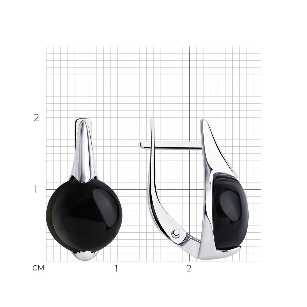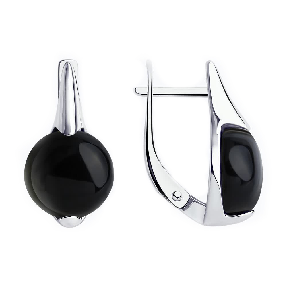 Серьги из серебра с черными агатами
