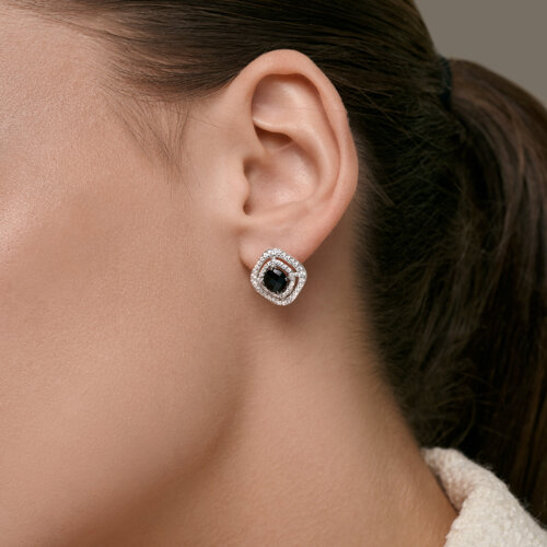 Серьги из серебра с ювелирными кристаллами и фианитами