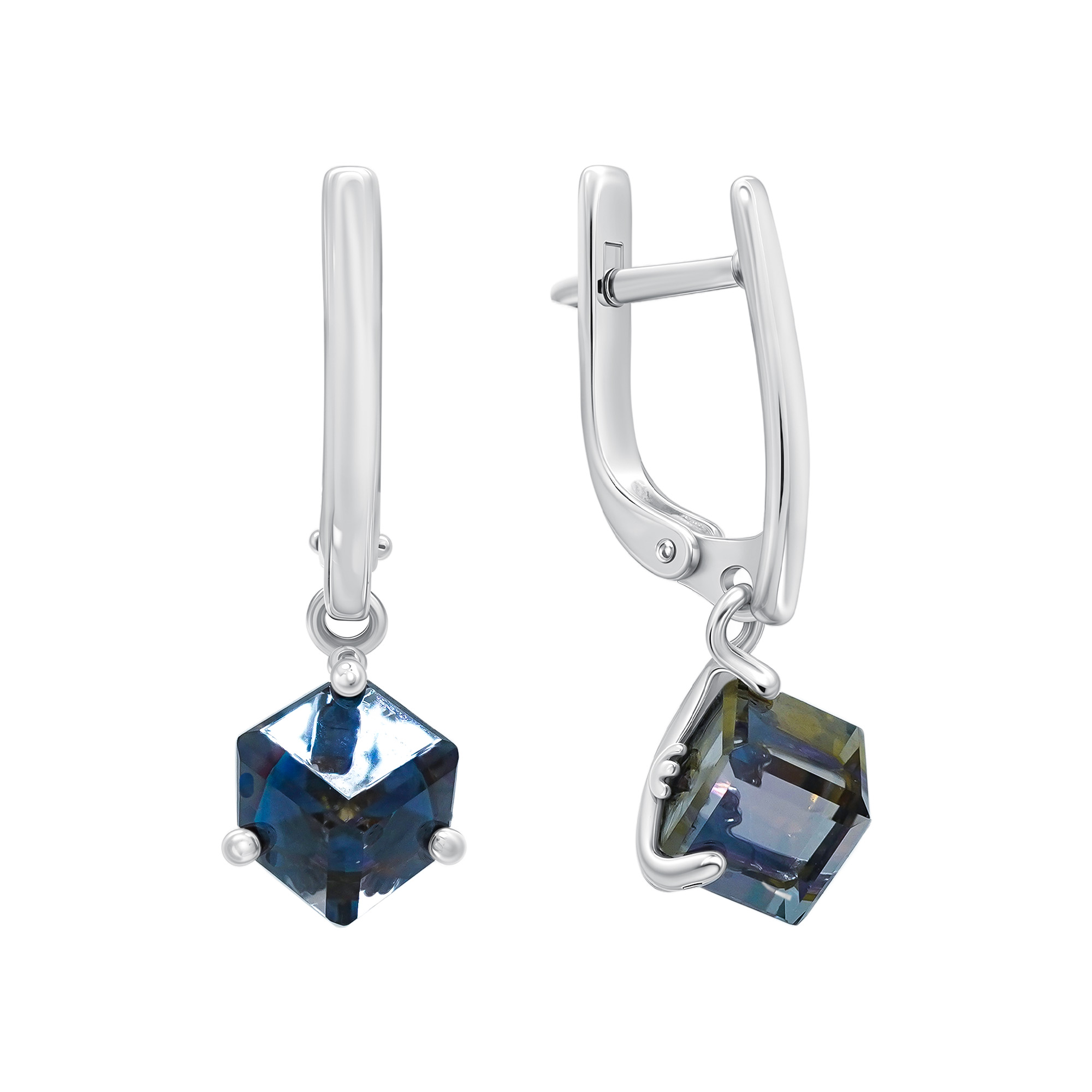 Серьги из серебра с бриллиантами и горным хрусталем