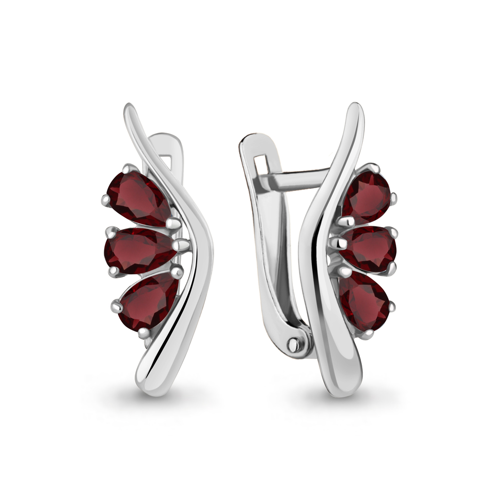 Серьги из серебра с гранатами и фианитами