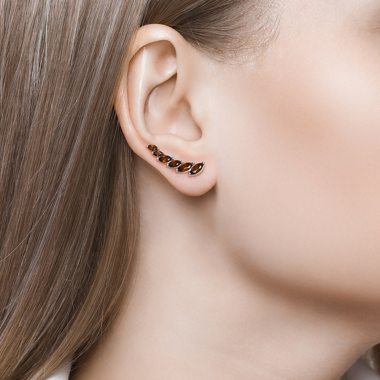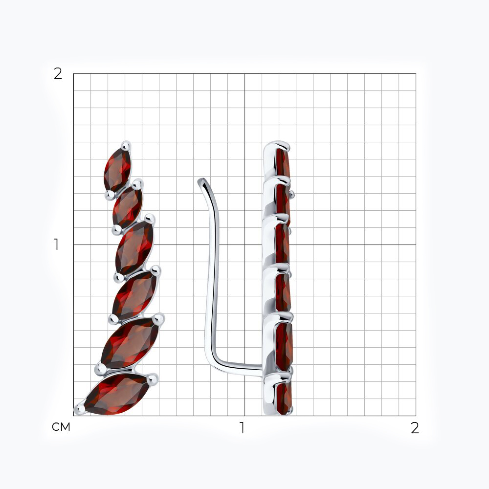 Серьги из серебра с гранатами и фианитами
