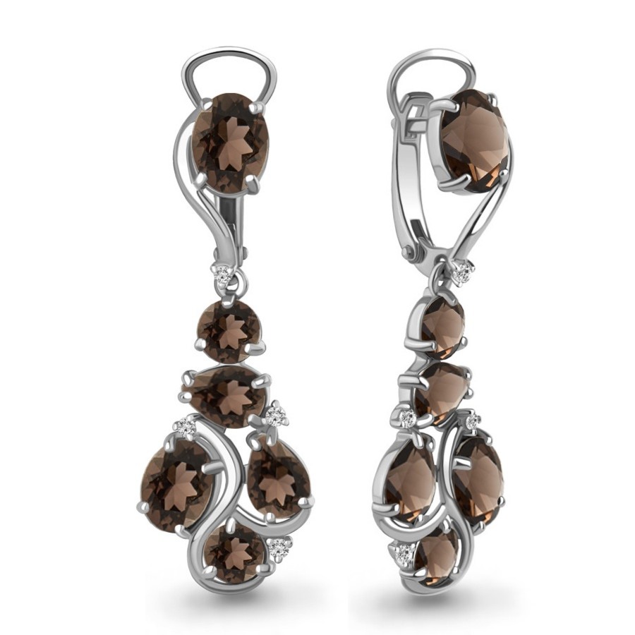 Серьги из серебра с кварцем и фианитами