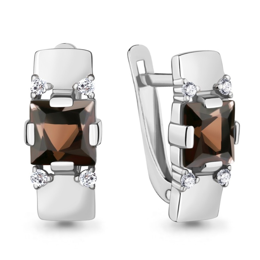 Серьги из серебра с горным хрусталем и фианитами