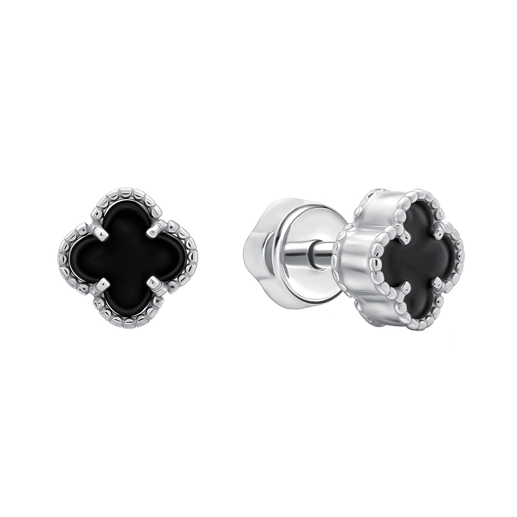 Серьги из серебра с ониксом "Мишки"