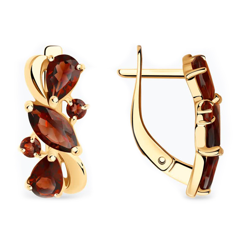Серьги из золота с гранатами