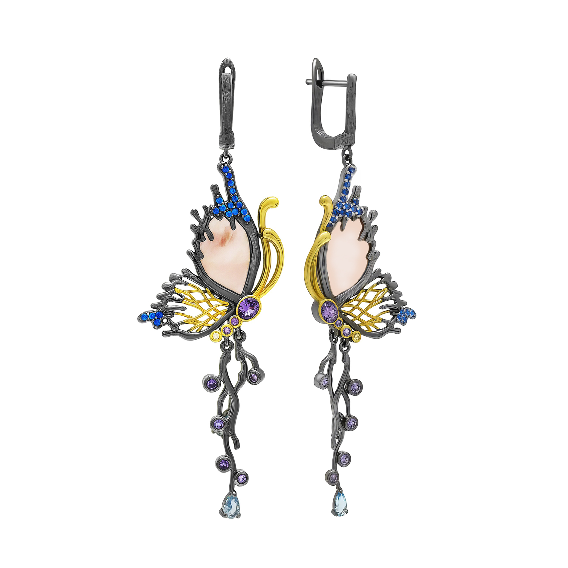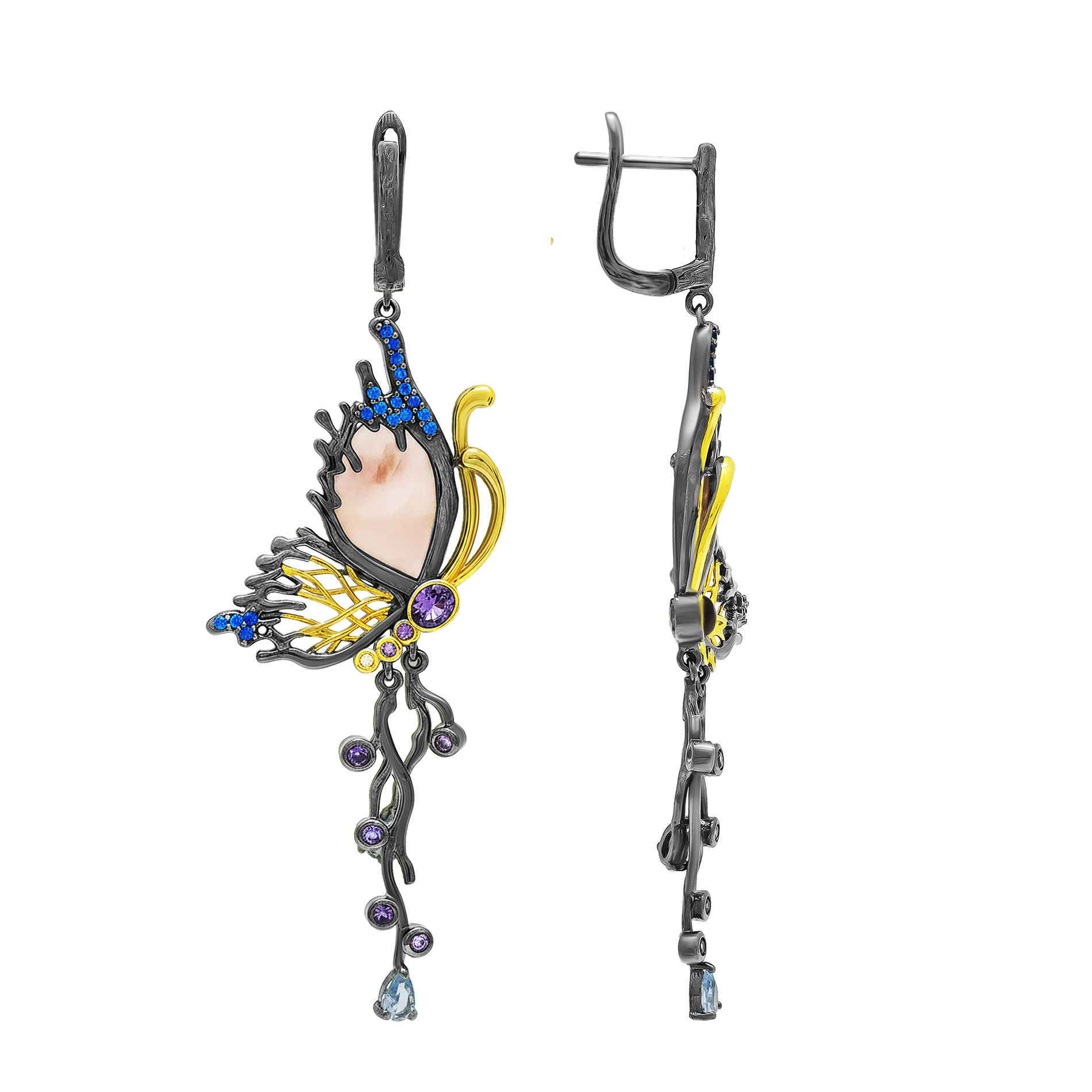 Серьги из серебра с кварцами и фианитами