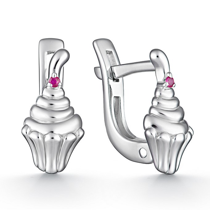 Серьги из белого золота с выращенными бриллиантами и рубинами