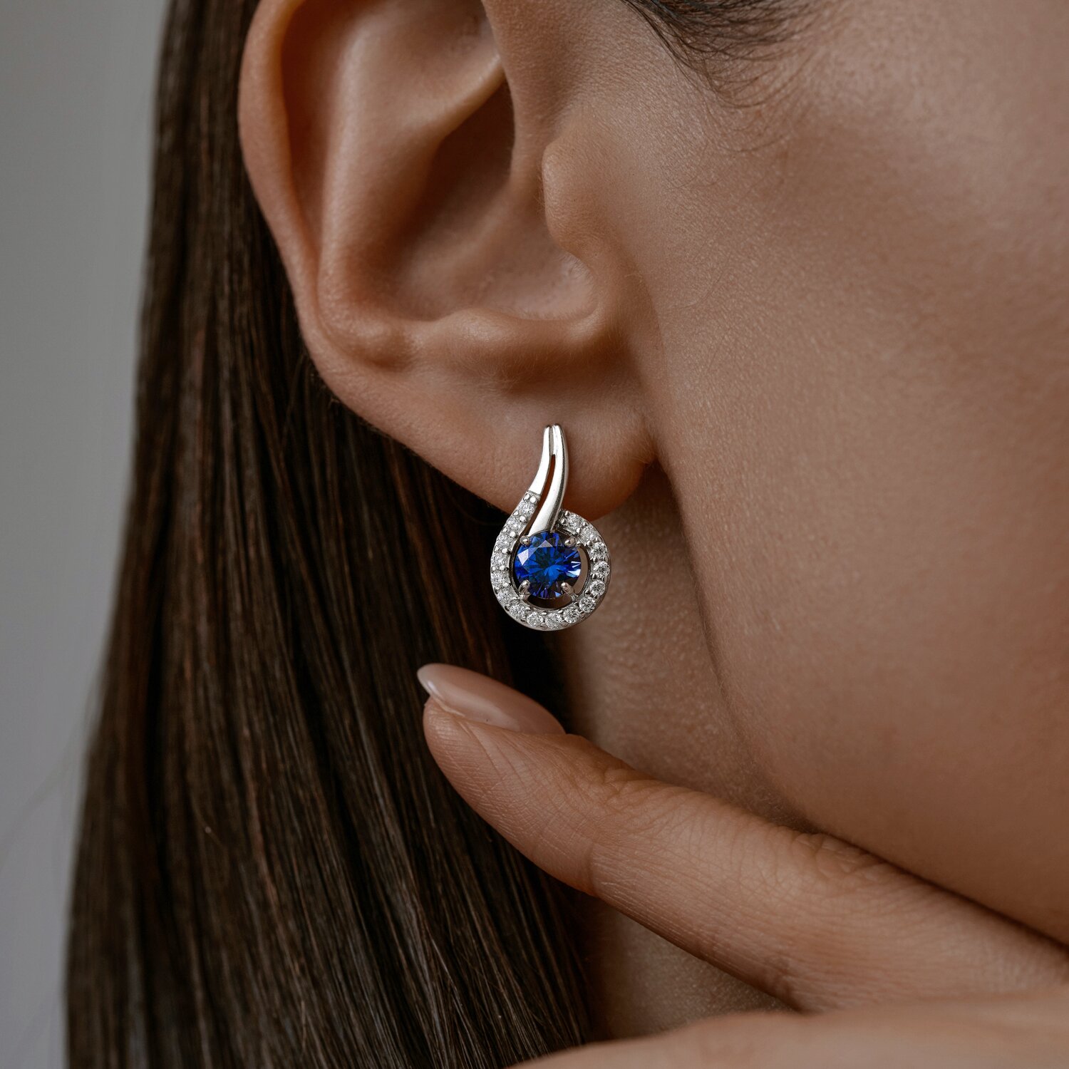 Серьги из серебра с ювелирными кристаллами и фианитами