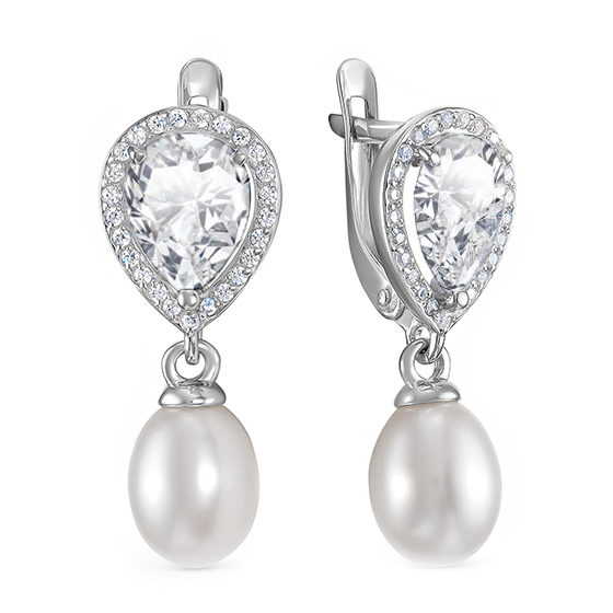 Серьги из золота с жемчугом и фианитами